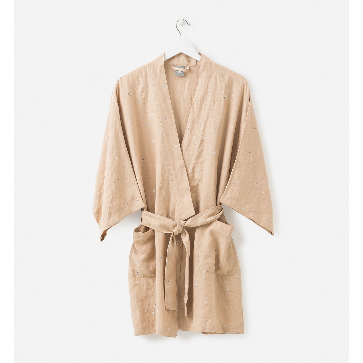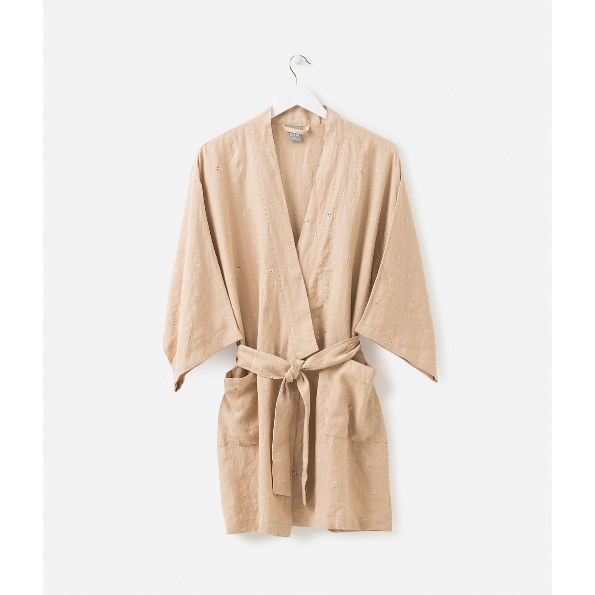 Set the weekend mood to easy living and relaxed sophistication with this Linen Robe. The simple floral design was originally painted in New Zealand by our in-house textile designers.